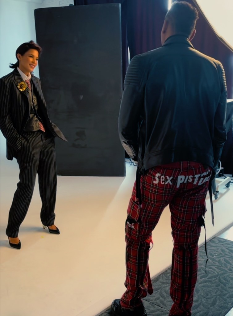 Behind the scenes of Veronica Webb gracing the cover of In Black Magazine in celebration of the Met Gala, photographed by the legendary Victor Demarchelier. She is styled by Marcus G. Blassingame in an almost androgynous couture look that seamlessly blends masculine and feminine elements. She is wearing a bespoke pinstripe double-breasted suit by Pence, paired with shoes by Ron Dyce, and accessorized with a brooch by Erickson Beamon at Showroom Seven. The makeup is by MUA Marc Cornwall of Artists By Timothy Priamo and hair by Andrea Wilson of NEXT ARTISTS completing this powerful androgynous aesthetic with impeccable artistry.