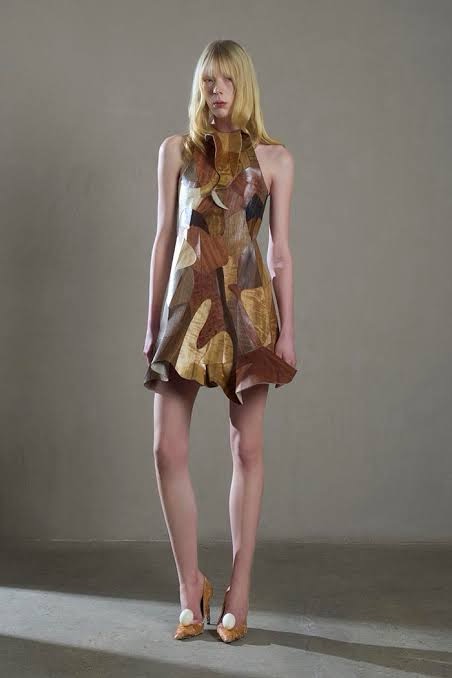Artificial Plumage returns as a signature language, but for LùCHEN the designer, the technique is more than ornament. Simulated feathers cut from reclaimed fragments coalesce into a “pixelated feather surface,” a motif that speaks to accumulation, repair, and reinvention. The result is a tactile archive embedded in fabric—a visual essay on how adornment can honor the past while presaging renewal.